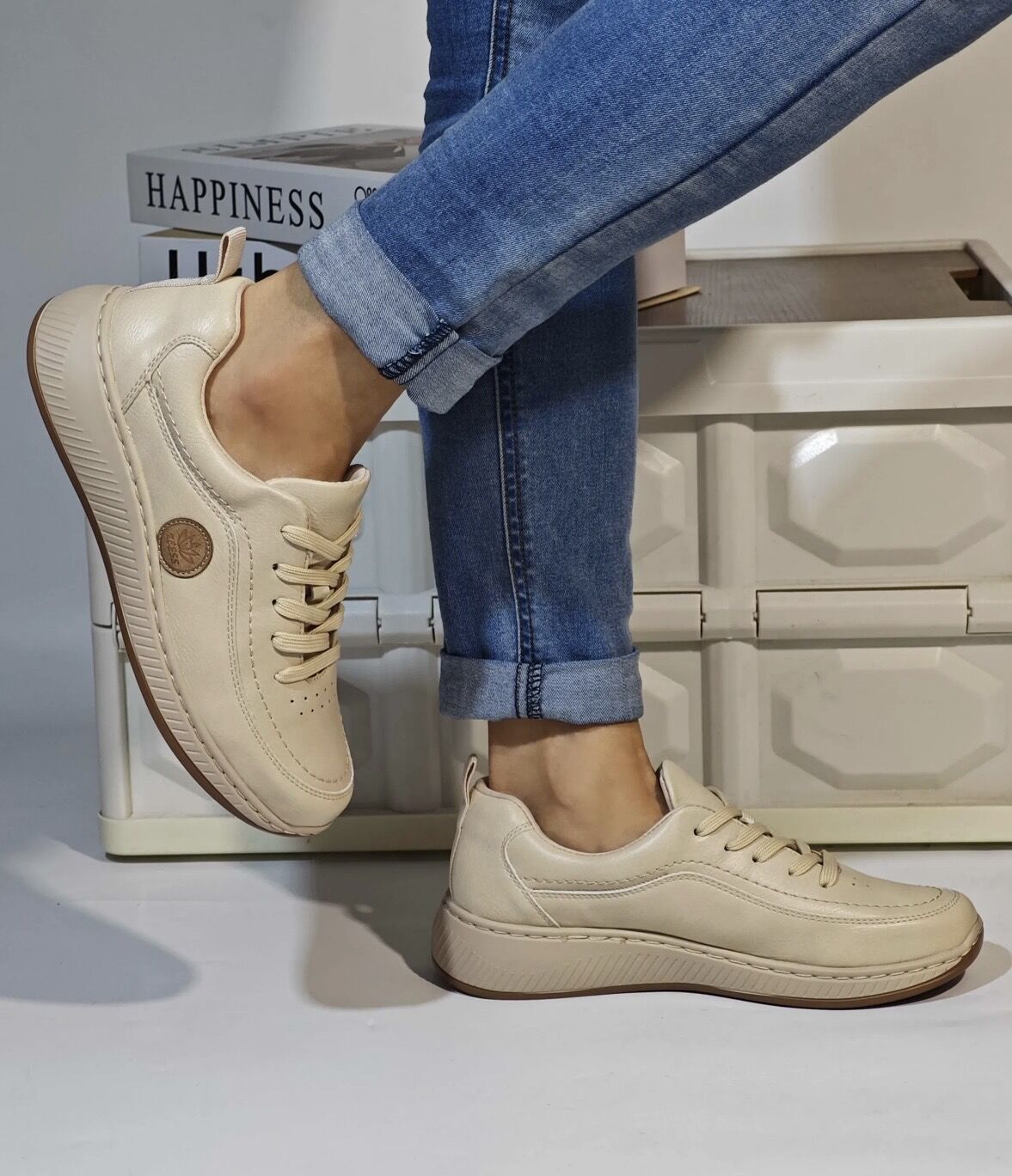 дамски ниски обувки - 7108 - бежови