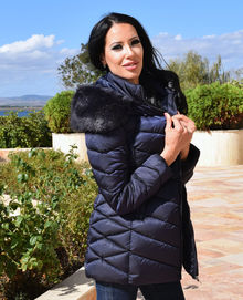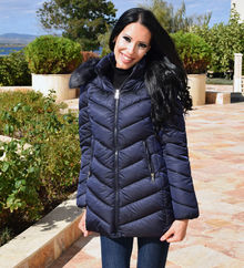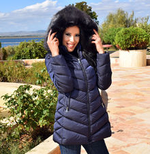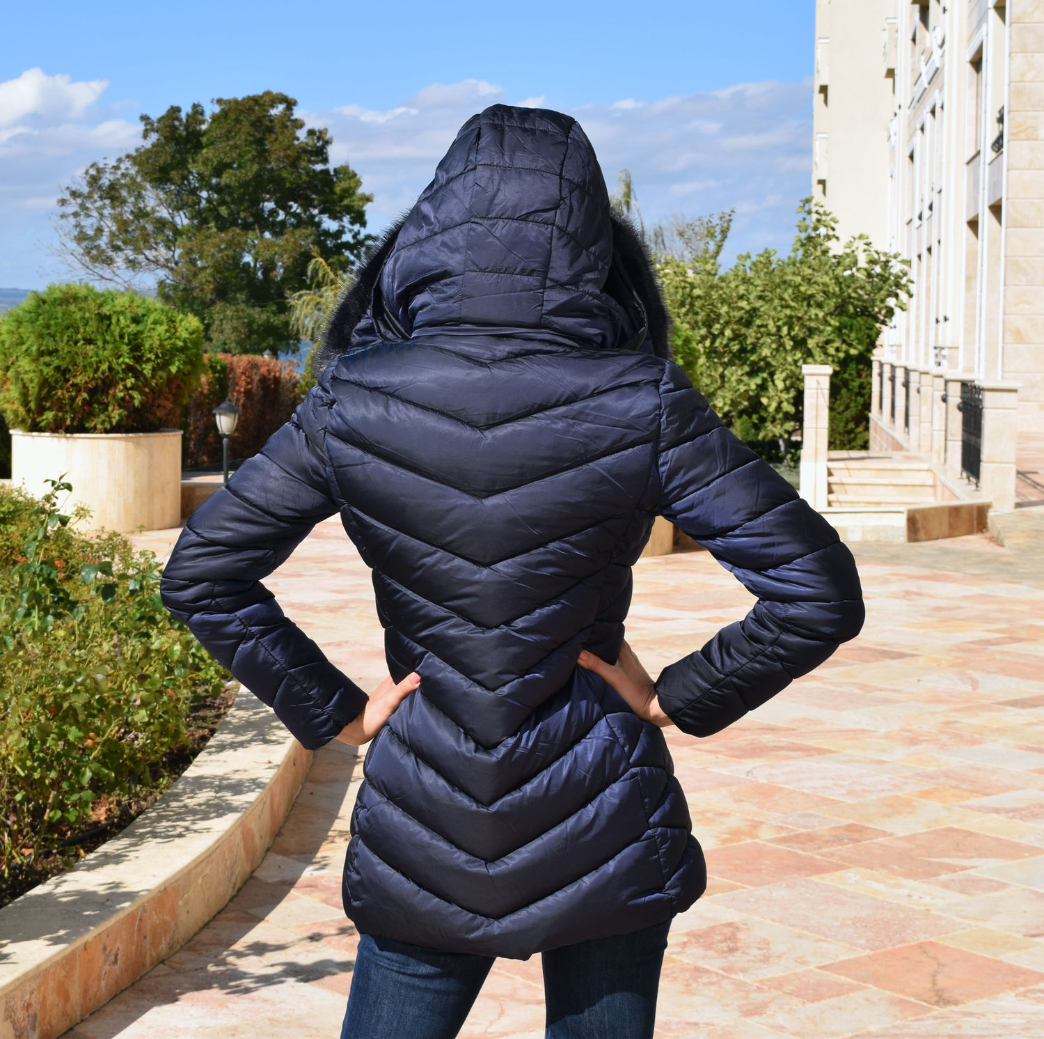 Дамско дълго зимно яке- код 2029-тъмно синьо