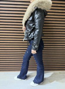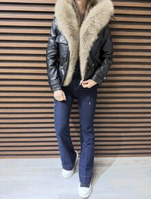 Дамско късо зимно яке с ЕСТЕСТВЕН КОСЪМ 19261-синьо
