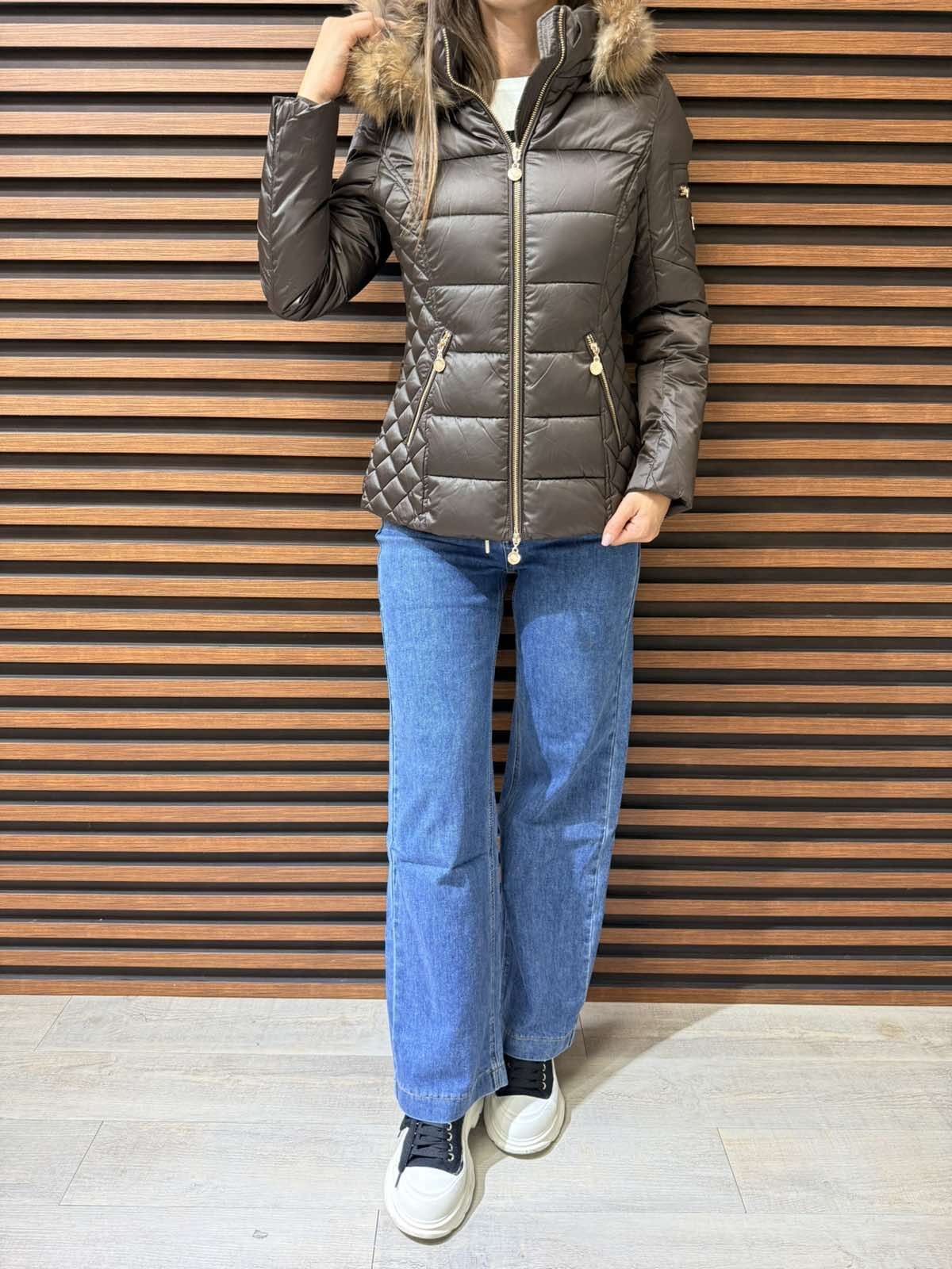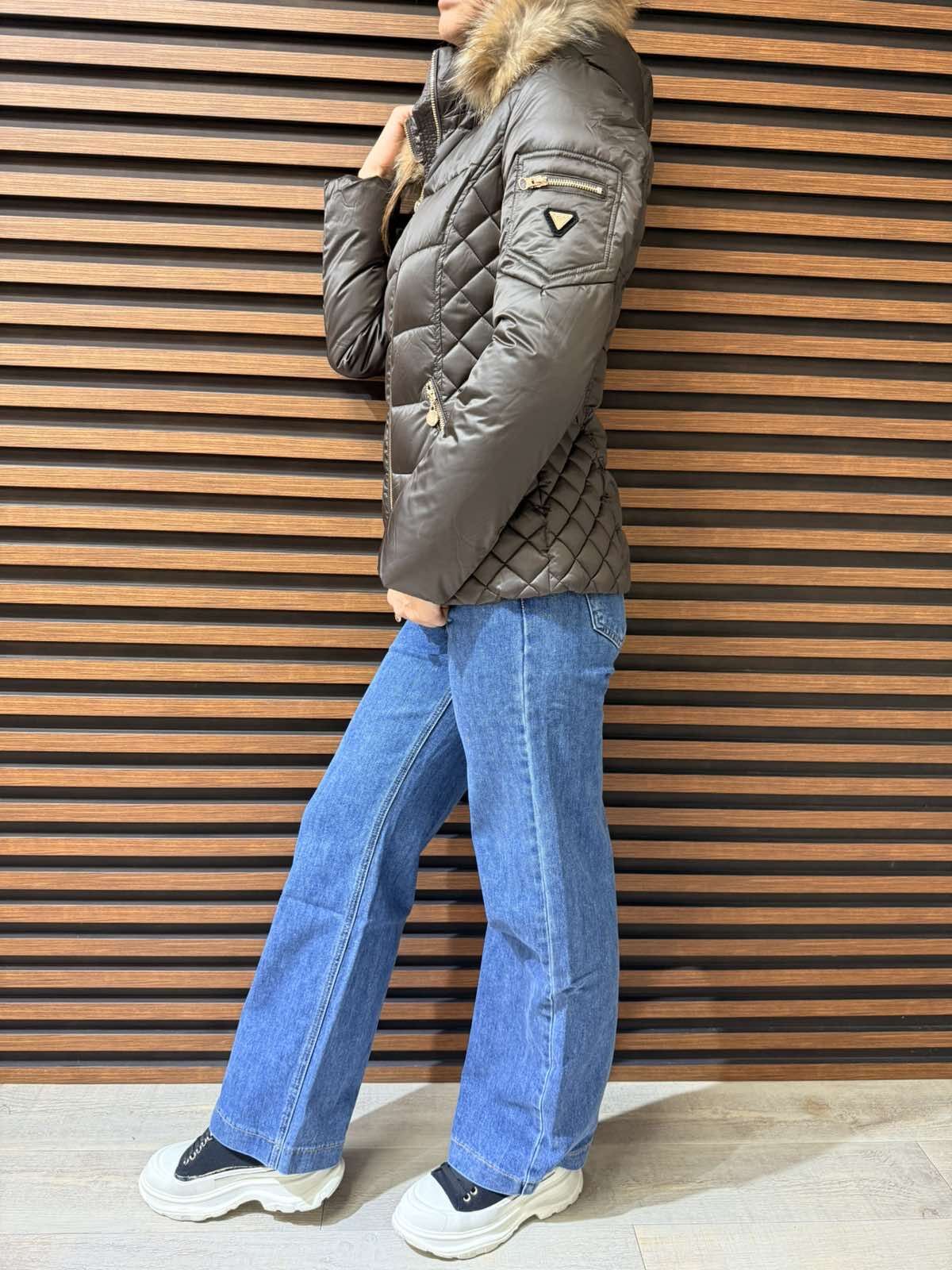 Дамско зимно яке с ЕСТЕСВЕН КОСЪМ-кафяво