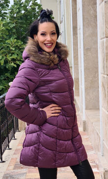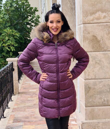 Дълго зимно дамско яке - 1618 - лилаво размер 46 до 54