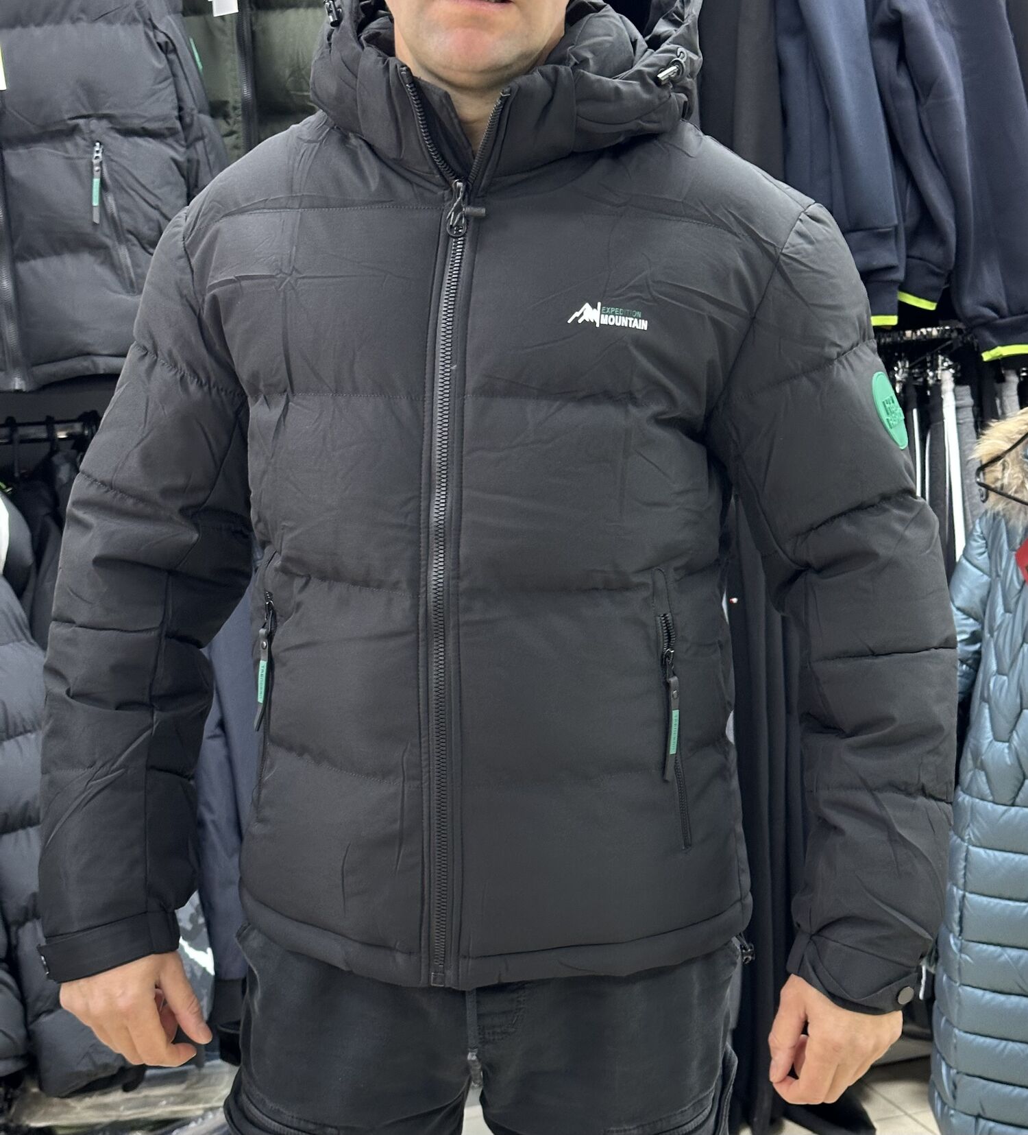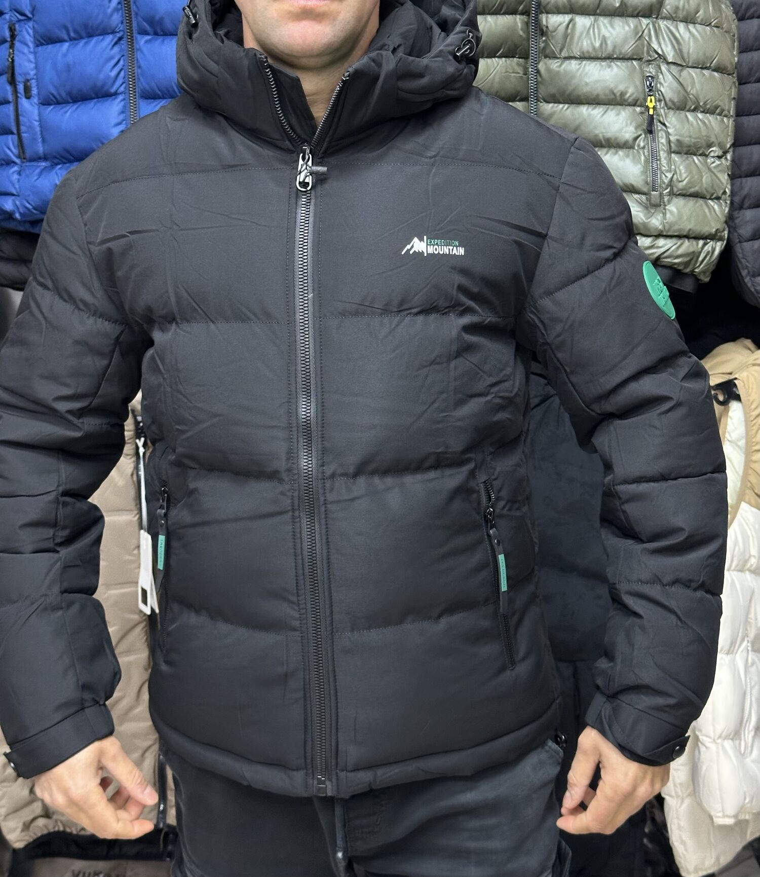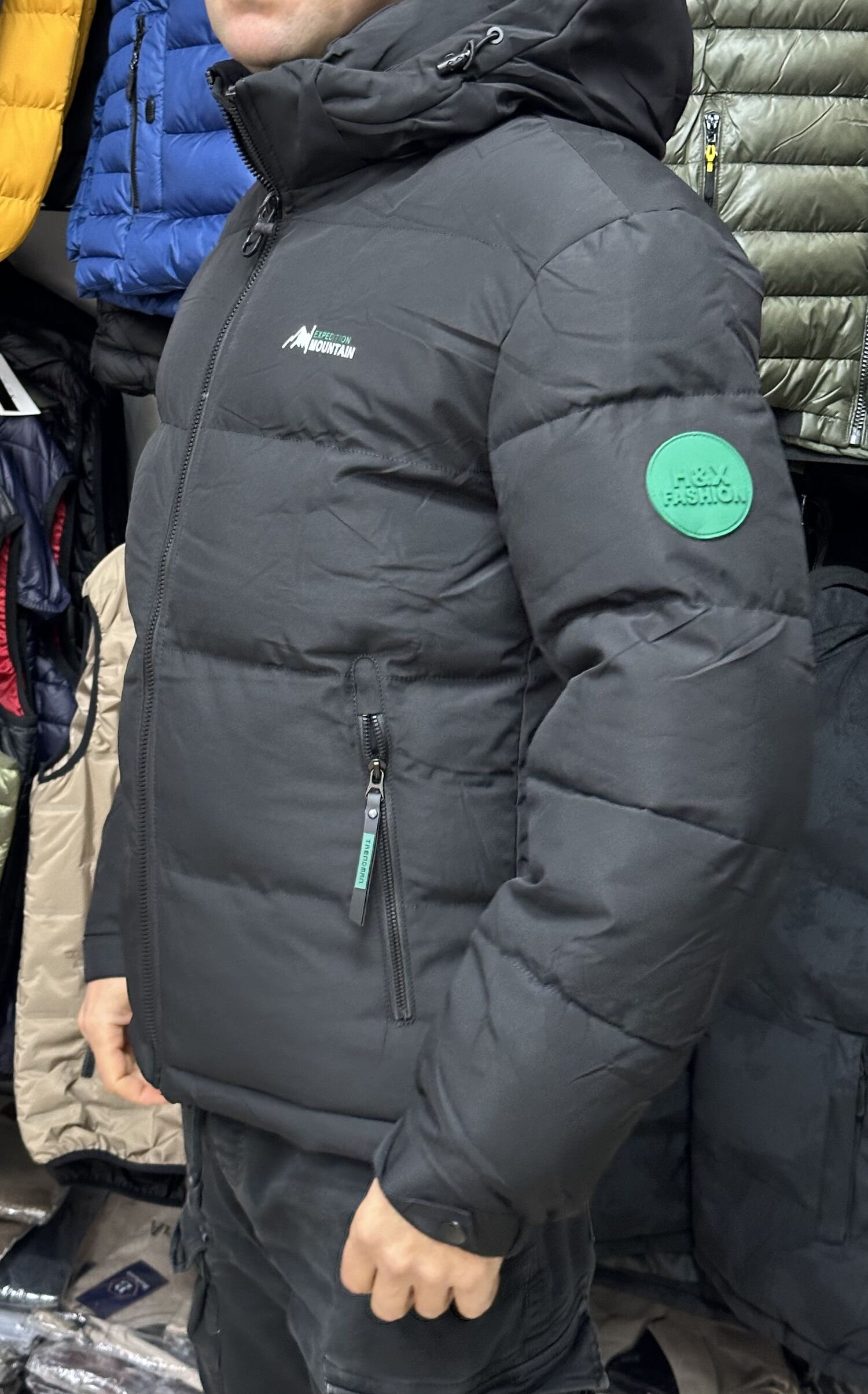 Мъжко зимно кожено яке - М - 015 - черно с текстилна качулка