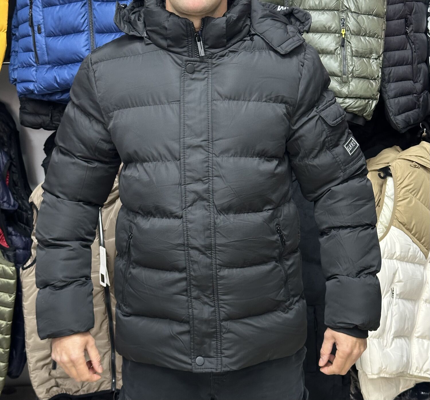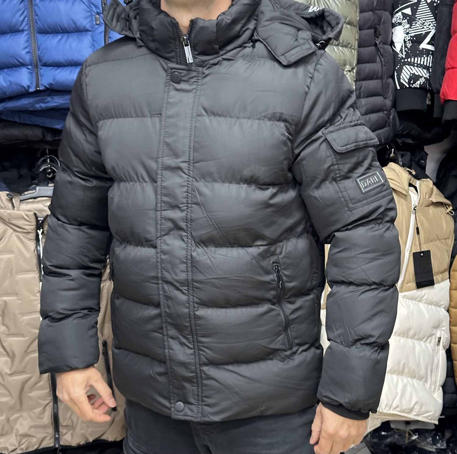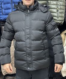 Мъжко зимно яке с текстилна качулка до 5ХЛ- тъмно синьо